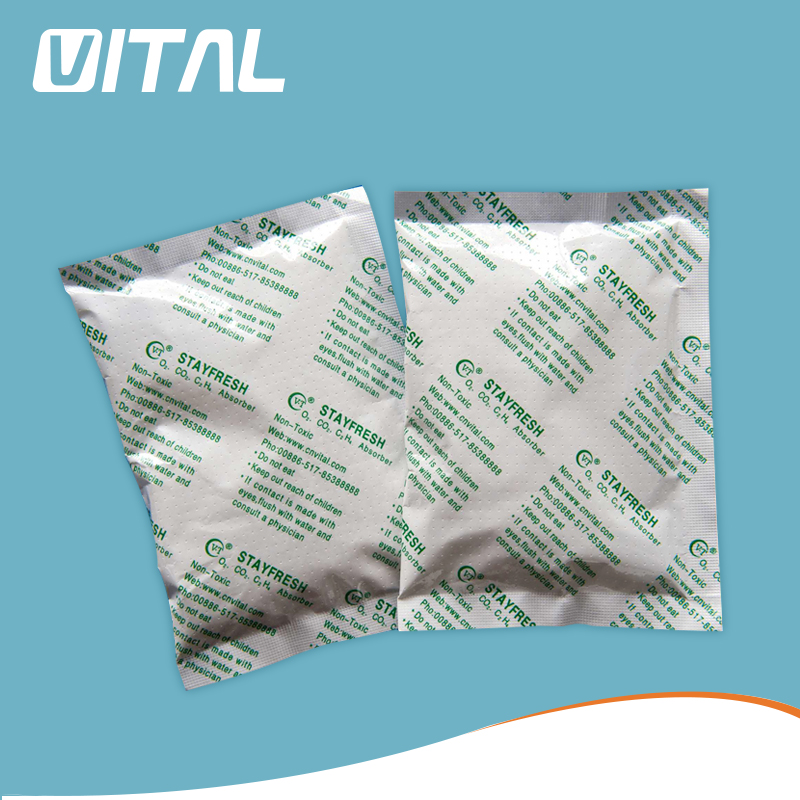VITAL果蔬保鮮劑是根據(jù)各種果蔬經(jīng)不同加工、處理后所需的貯運(yùn)條件,專門(mén)配制的氣調(diào)型果蔬保鮮劑的總稱。其主要功能是調(diào)節(jié)產(chǎn)品內(nèi)的氧氣、二氧化碳濃度,降低果蔬生理活性,清除乙烯、乙醇、甲醛、乙醛等有害的代謝產(chǎn)物,防止品質(zhì)惡化,抑菌、防霉減少微生物污染,調(diào)節(jié)溫度,吸收包裝內(nèi)產(chǎn)生的明水和各類有害氣體,使果蔬在最適的貯藏環(huán)境中完成貯運(yùn)、銷(xiāo)售過(guò)程。